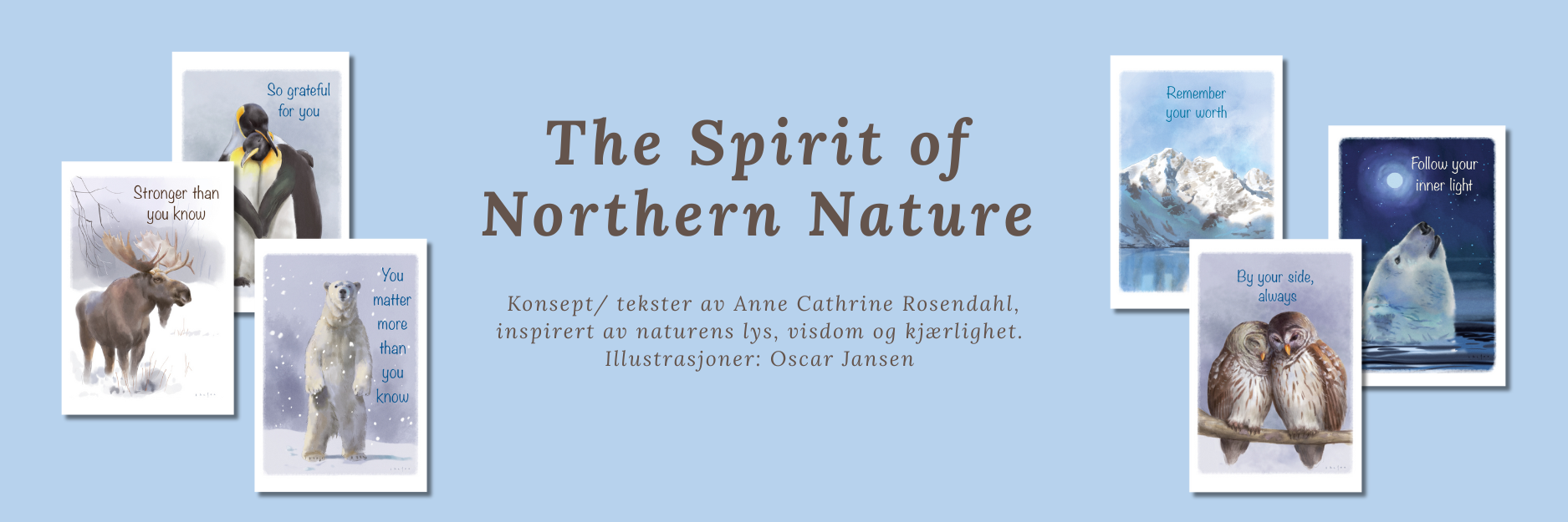 Konsept/ tekster av Anne Cathrine Rosendahl, inspirert av naturens lys, visdom og kjærlighet. Illustrasjoner: Oscar Jansen